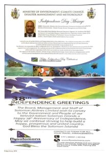 38th Independence greetings from Solomon Airlines Limited