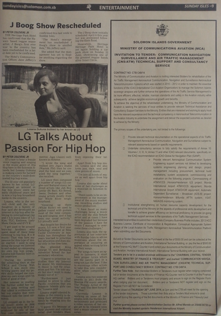 Newspaper: Sunday Isles Newspaper Issue Date: Sunday 8 June 2014 Issue No. 220 Page No. 9 (half page) Contract No. CTB C49/14