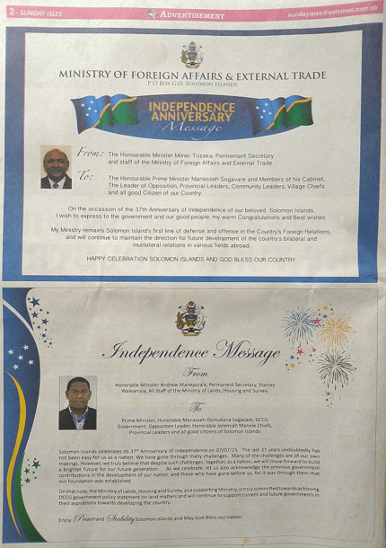 From: Hon. Milner Tozaka, Permanent Secretary and staff