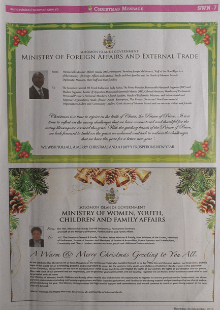 From Hon. Freda Tuki AB Soriacomua, Permanent Secretary and staff