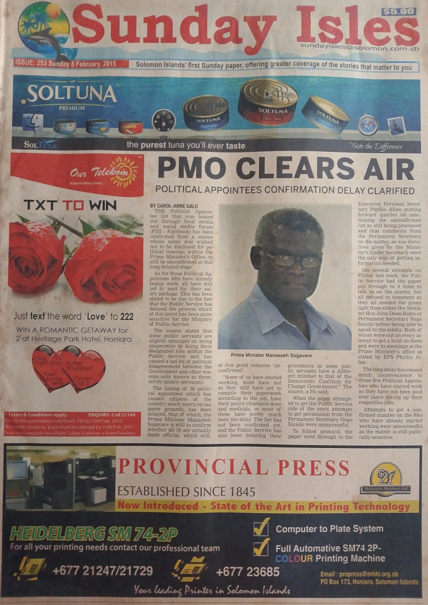 Newspaper: Sunday Isles Newspaper Issue Date: Sunday 8 February 2015 Issue No. 253 Page No. Front page (top page promotion)